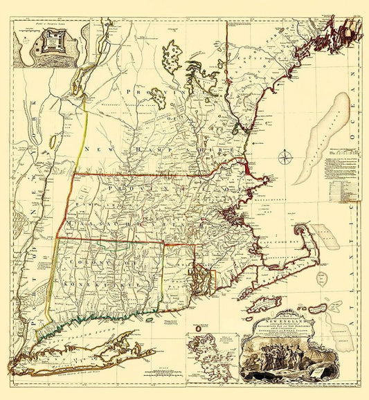 Massachusetts, New Hampshire, Connecticut, RI White Modern Wood Framed Art Print with Double Matting by Unknown