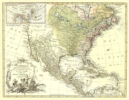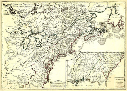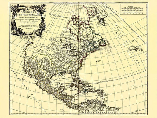 European Possessions North America - Vaugondy 1750 White Modern Wood Framed Art Print with Double Matting by Vaugondy