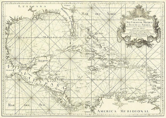 Gulf of Mexico and Islands of America 1755 White Modern Wood Framed Art Print with Double Matting by Unknown