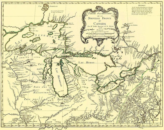 Western Part of New France Or Canada 1755 White Modern Wood Framed Art Print with Double Matting by Unknown