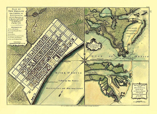 New Orleans Louisiana - Jefferys 1720 White Modern Wood Framed Art Print with Double Matting by Jefferys