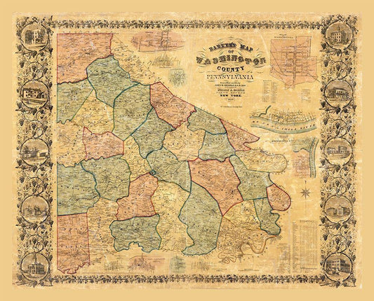 Washington County Pennsylvania - Barker 1856 White Modern Wood Framed Art Print with Double Matting by Barker