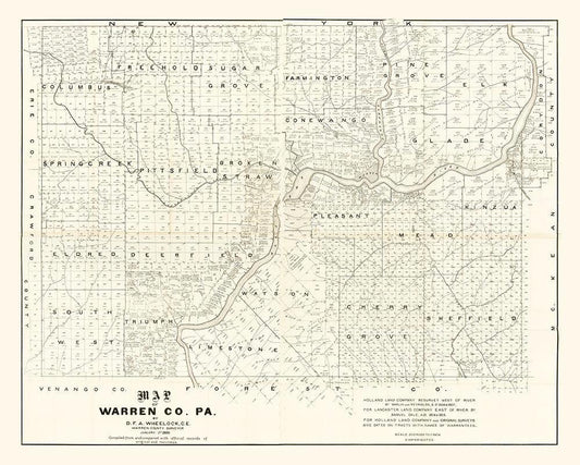 Warren County Pennsylvania - Wheelock 1889 White Modern Wood Framed Art Print with Double Matting by Wheeler