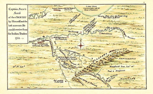 Captain Snows Sketch of Country - Snow 1754 White Modern Wood Framed Art Print with Double Matting by Snow