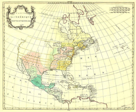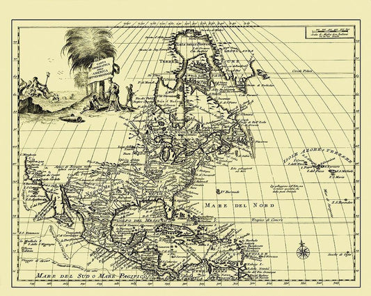 North America - 1750 White Modern Wood Framed Art Print with Double Matting by Unknown