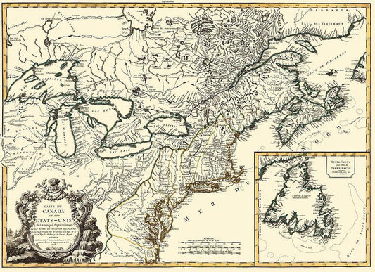 United States Canada - Vaugondy 1778 White Modern Wood Framed Art Print with Double Matting by Vaugondy
