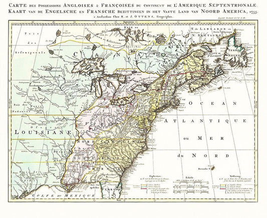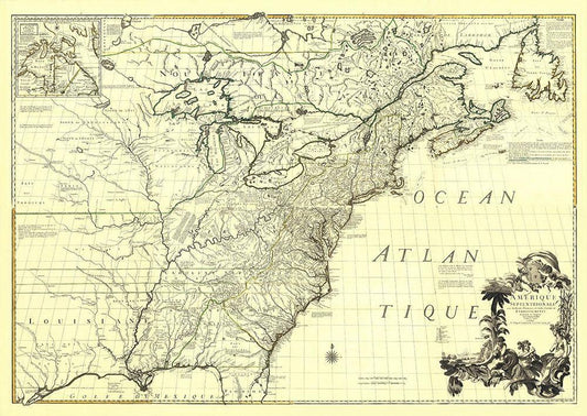 English French Possessions North America White Modern Wood Framed Art Print with Double Matting by Ottens