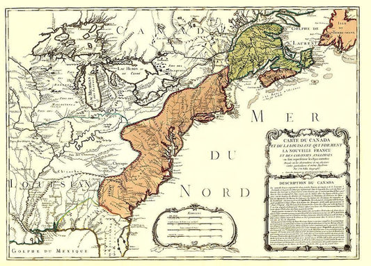 Canada Louisiana New France with English White Modern Wood Framed Art Print with Double Matting by Nolin
