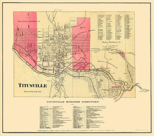 Titusville Pennsylvania Landowner - Beers 1865 White Modern Wood Framed Art Print with Double Matting by Beers