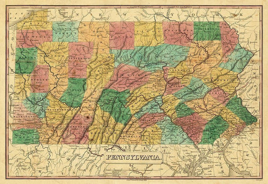 Pennsylvania - Finley 1829 White Modern Wood Framed Art Print with Double Matting by Finley
