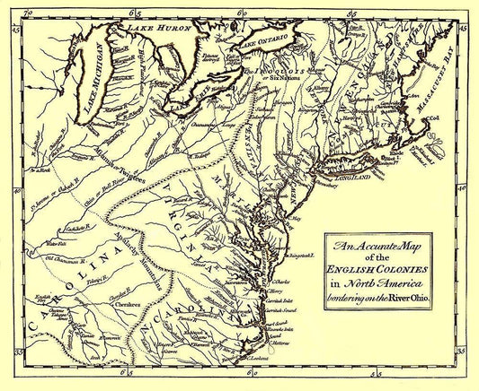 English Colonies Bordering Ohio River - 1750 White Modern Wood Framed Art Print with Double Matting by Unknown