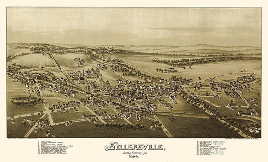 Sellersville Pennsylvania - Fowler 1894 White Modern Wood Framed Art Print with Double Matting by Fowler