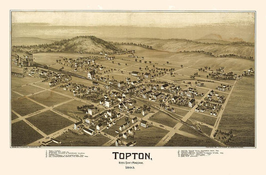 Topton Pennsylvania - Fowler 1893 White Modern Wood Framed Art Print with Double Matting by Fowler