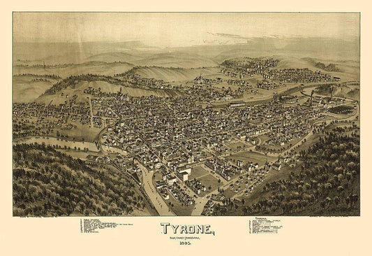 Tyrone Pennsylvania - Fowler 1895 White Modern Wood Framed Art Print with Double Matting by Fowler