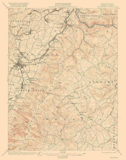 Uniontown Pennsylvania Quad - USGS 1900 White Modern Wood Framed Art Print with Double Matting by USGS