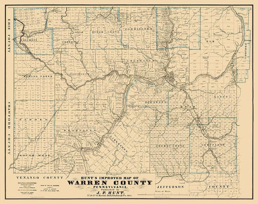 Warren County Pennsylvania - Hunt 1865 White Modern Wood Framed Art Print with Double Matting by Hunt