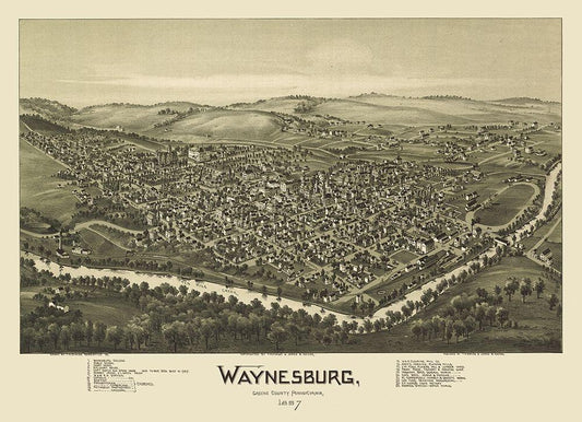 Waynesburg Pennsylvania - Fowler 1897 White Modern Wood Framed Art Print with Double Matting by Fowler