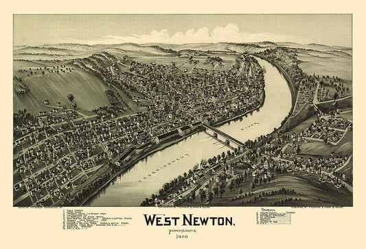 West Newton Pennsylvania - Fowler 1900 White Modern Wood Framed Art Print with Double Matting by Fowler