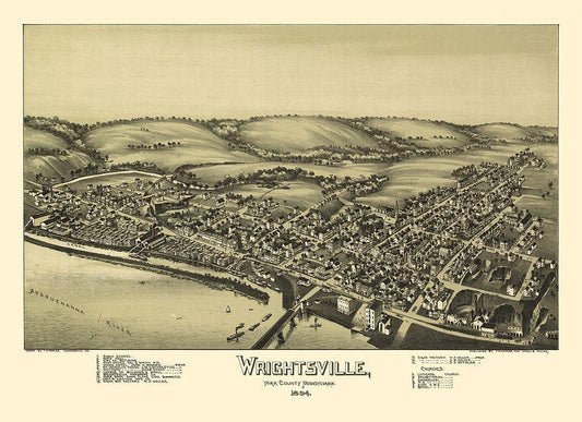 Wrightsville Pennsylvania - Fowler 1894 White Modern Wood Framed Art Print with Double Matting by Fowler