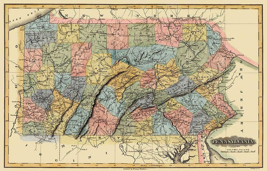 Pennsylvania - 1823 White Modern Wood Framed Art Print with Double Matting by Lucas