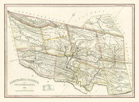 Schuylkill County Pennsylvania - 1830 White Modern Wood Framed Art Print with Double Matting by Unknown