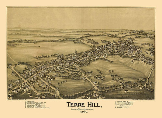 Terre Hill Pennsylvania - Fowler 1894 White Modern Wood Framed Art Print with Double Matting by Fowler