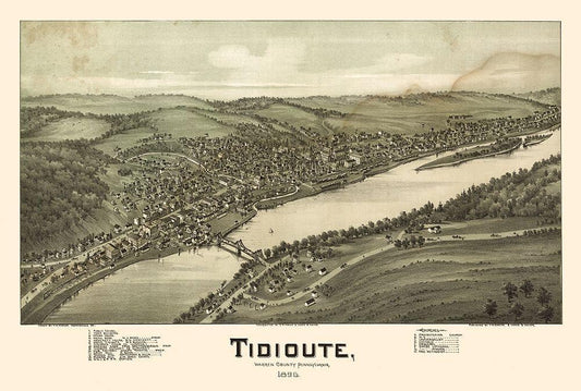 Tidioute Pennsylvania - Fowler 1896 White Modern Wood Framed Art Print with Double Matting by Fowler