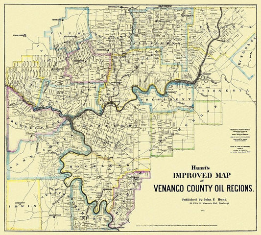 Venango Pennsylvania Landowner - Hunt 1865 White Modern Wood Framed Art Print with Double Matting by Hunt