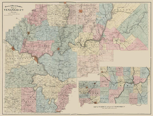 Venango County Pennsylvania - Beers 1865 White Modern Wood Framed Art Print with Double Matting by Beers