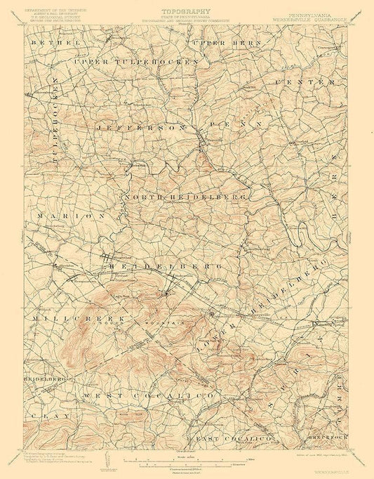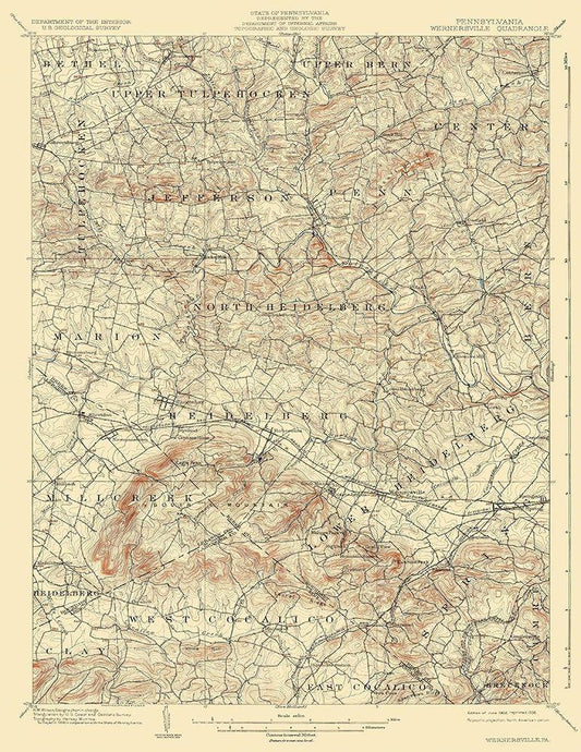Wernersville Pennsylvania Quad - USGS 1902 White Modern Wood Framed Art Print with Double Matting by USGS