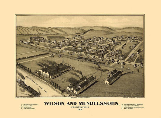 Wilson Mendelssohn Pennsylvania- Fowler 1902 White Modern Wood Framed Art Print with Double Matting by Fowler