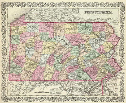 Pennsylvania - Colton 1856 White Modern Wood Framed Art Print with Double Matting by Colton