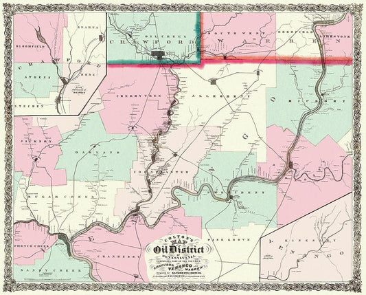 Oil District In Pennsylvania with Landowners 1865 White Modern Wood Framed Art Print with Double Matting by Colton