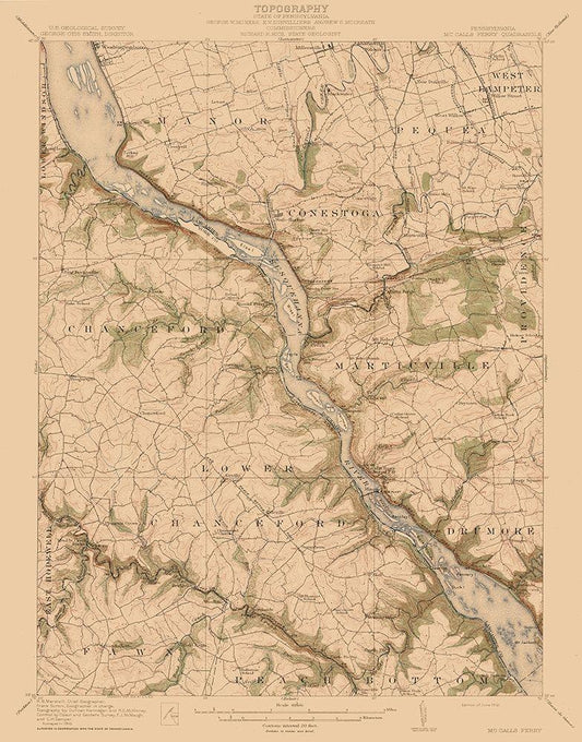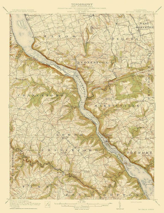 Mccalls Ferry Pennsylvania Quad - USGS 1912 White Modern Wood Framed Art Print with Double Matting by USGS