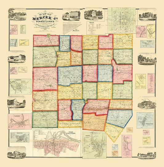 Mercer County Pennsylvania - Treat 1860 White Modern Wood Framed Art Print with Double Matting by Treat