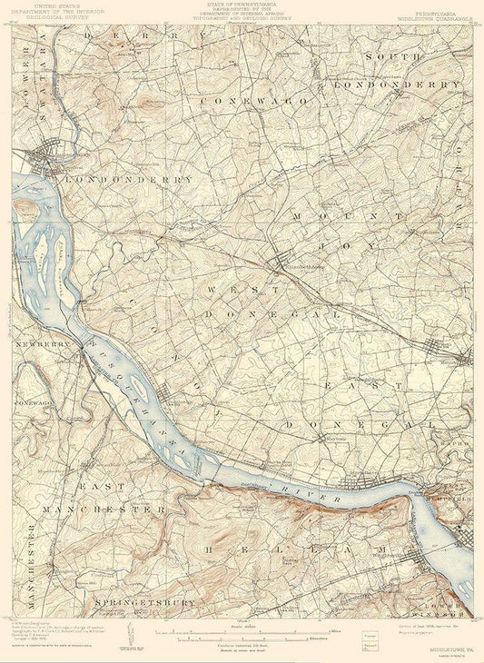 Middletown Pennsylvania Quad - USGS 1908 White Modern Wood Framed Art Print with Double Matting by USGS