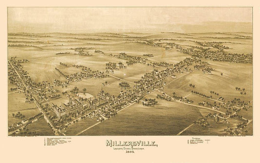 Millersville Pennsylvania - Fowler 1894 White Modern Wood Framed Art Print with Double Matting by Fowler