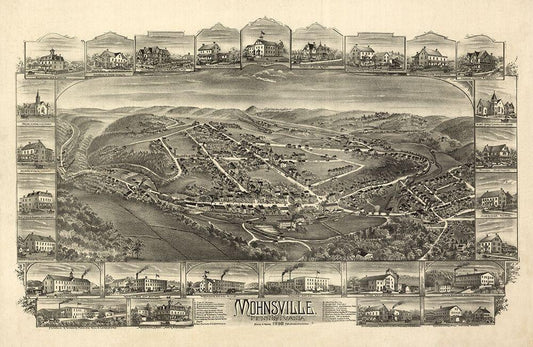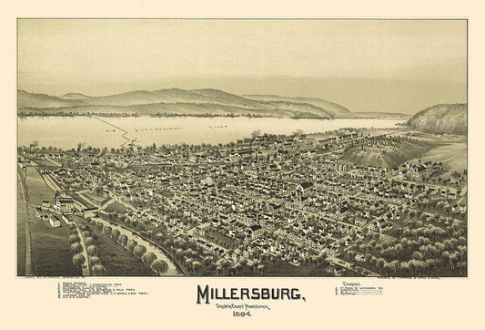 Millersburg Pennsylvania - Fowler 1894 White Modern Wood Framed Art Print with Double Matting by Fowler