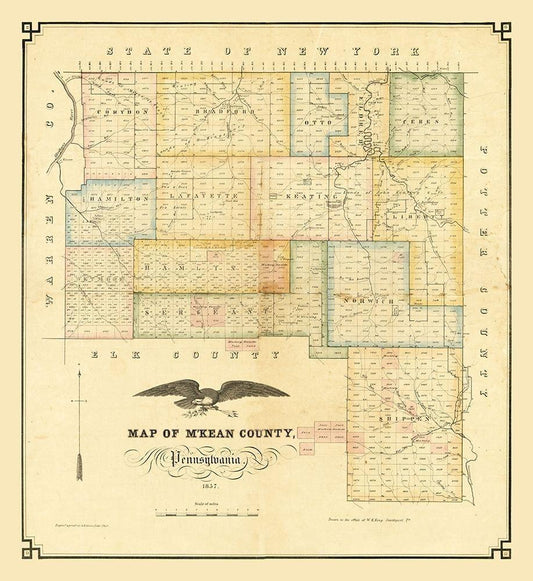 MKean County Pennsylvania - Kollner 1857 White Modern Wood Framed Art Print with Double Matting by Kollner