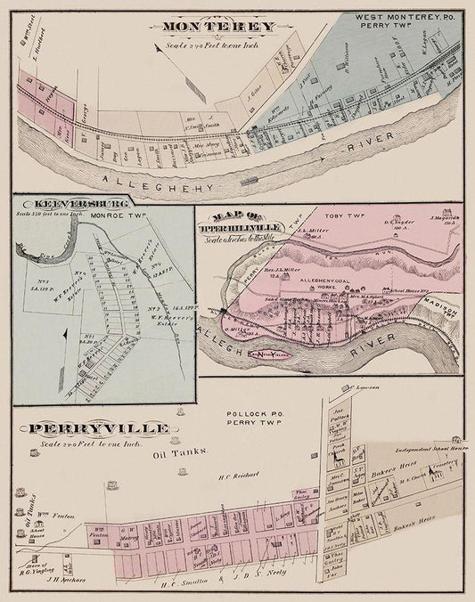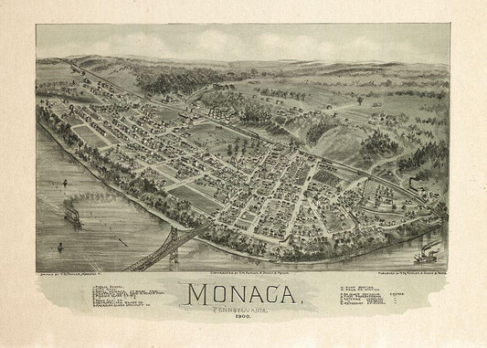Monaca Pennsylvania - Fowler 1900 White Modern Wood Framed Art Print with Double Matting by Fowler