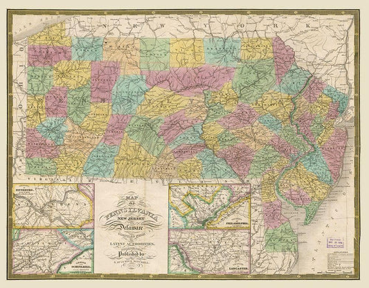 New Jersey Pennsylvania - Mitchell 1832 White Modern Wood Framed Art Print with Double Matting by Mitchell