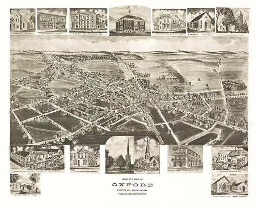 Oxford Pennsylvania - Fowler 1907 White Modern Wood Framed Art Print with Double Matting by Fowler