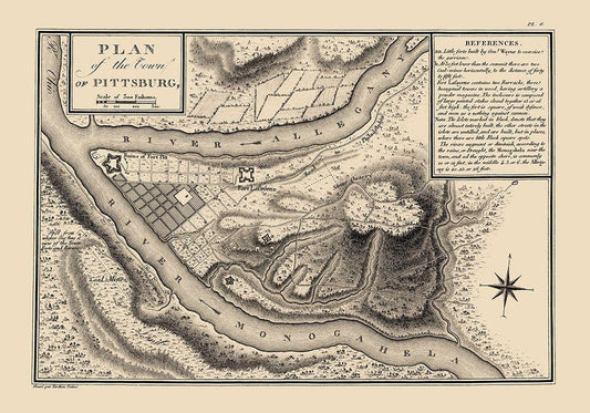Pittsburg Pennsylvania - Collot 1796 White Modern Wood Framed Art Print with Double Matting by Collot