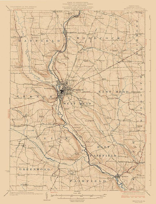 Meadville Pennsylvania Quad - USGS 1923 White Modern Wood Framed Art Print with Double Matting by USGS