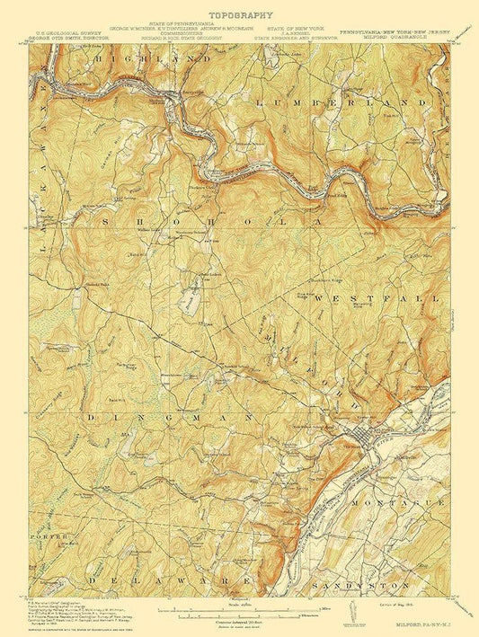 Milford New York New Jersey Quad - USGS 1915 White Modern Wood Framed Art Print with Double Matting by USGS