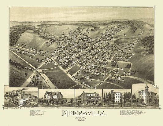 Minersville Pennsylvania - Fowler 1889 White Modern Wood Framed Art Print with Double Matting by Fowler
