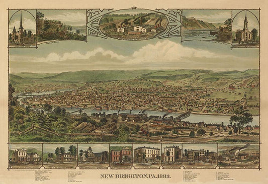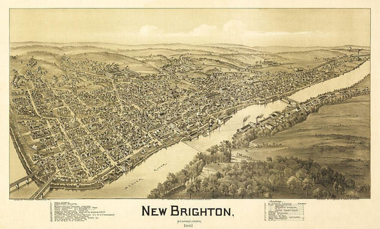 New Brighton Pennsylvania - Corbin 1883 White Modern Wood Framed Art Print with Double Matting by Corbin