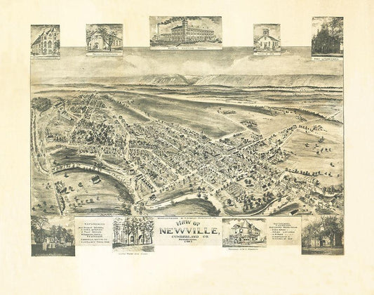 Newville Pennsylvania - Fowler 1903 White Modern Wood Framed Art Print with Double Matting by Fowler