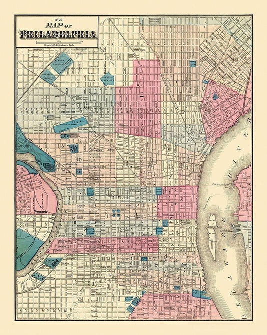Philadelphia Pennsylvania Street - Beers 1872 White Modern Wood Framed Art Print with Double Matting by Beers