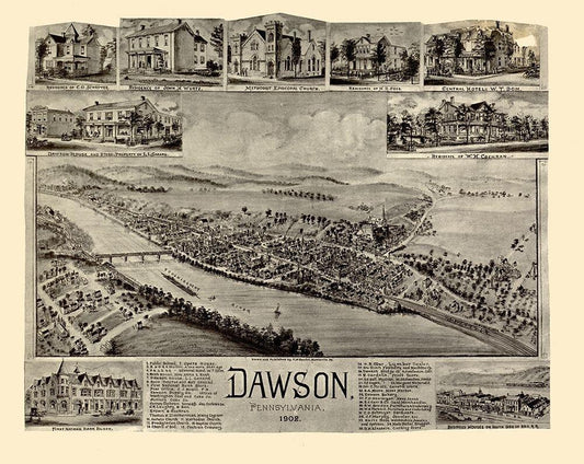 Dawson Pennsylvania - Fowler 1902 White Modern Wood Framed Art Print with Double Matting by Fowler